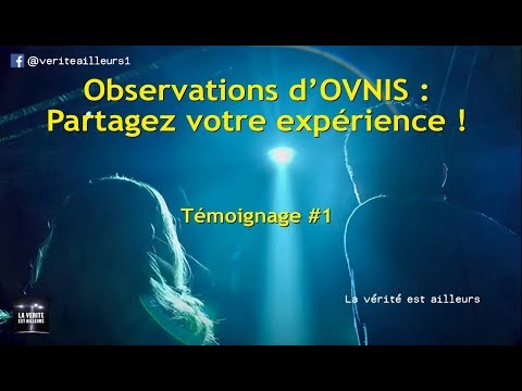 Je viens de créer une rubrique "Témoignages OVNIS" sur ma chaîne secondaire. Si vous avez observé l'apparition d'un OVNI et que vous souhaitez partager votre expérience, envoyez-moi votre témoignage filmé (et vos photos ou vidéos, si vous en avez) à : veriteailleurs2@gmail.com